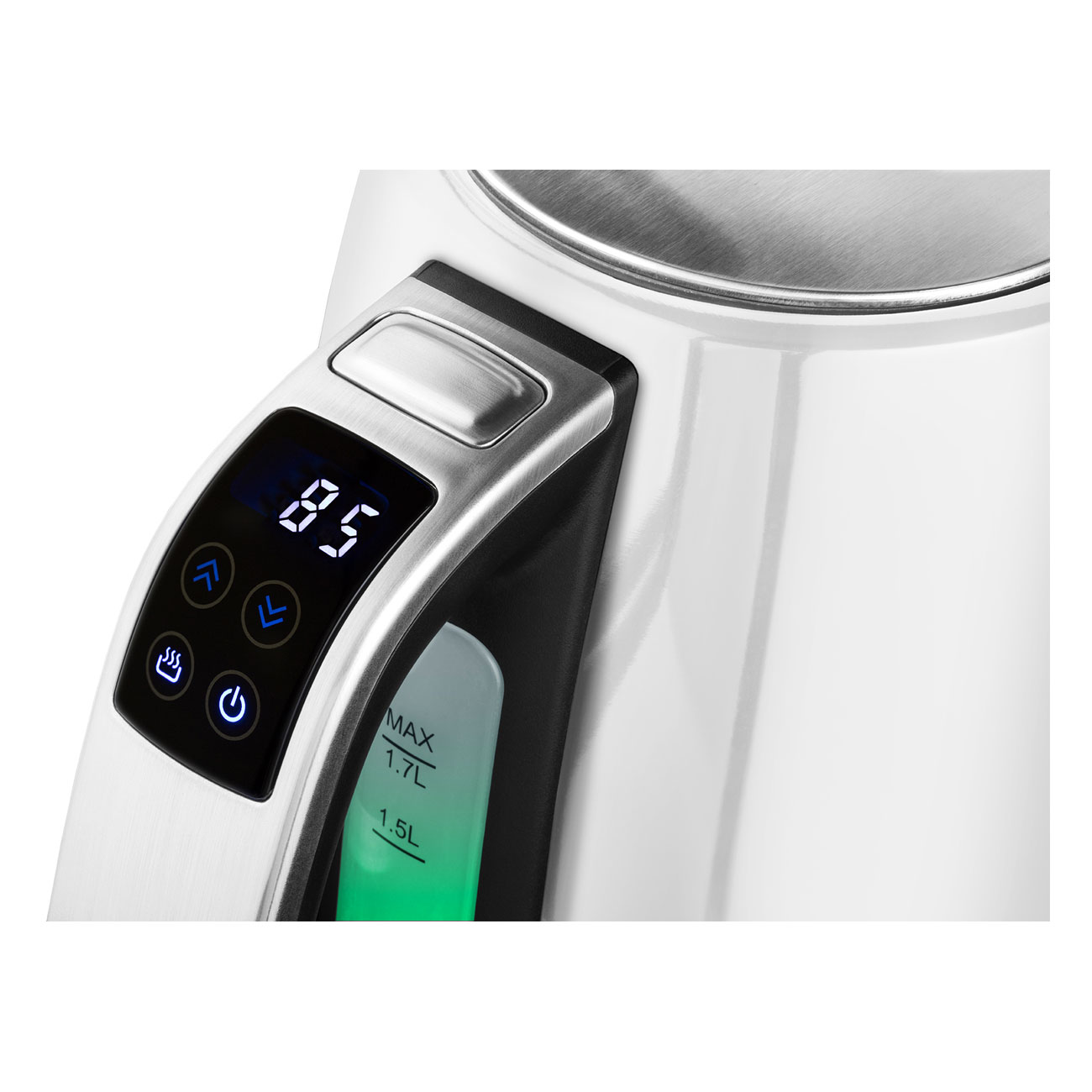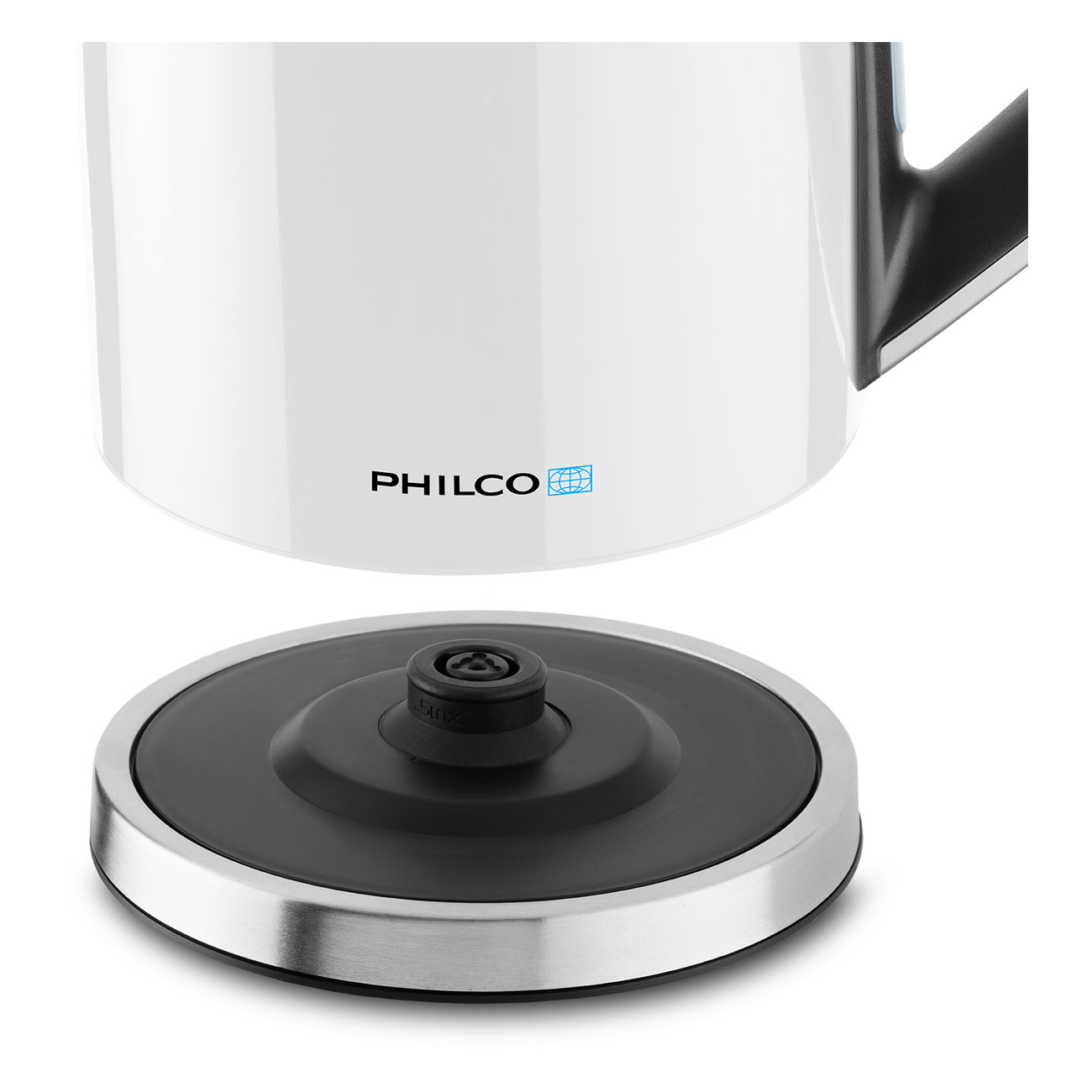 Are you thinking about buying a new electric kettle? The brand new PHILCO kettle PHWK1701 provides you not only simple elegant design which you love to have every day on your eyes and perfect quality. Beside that you find advanced safety elements. The other advantage is control panel on handle of kettle and display which shows actual temperature. You appreciate the change of colors in water window according to temperature of water in the kettle or function to over boil water.