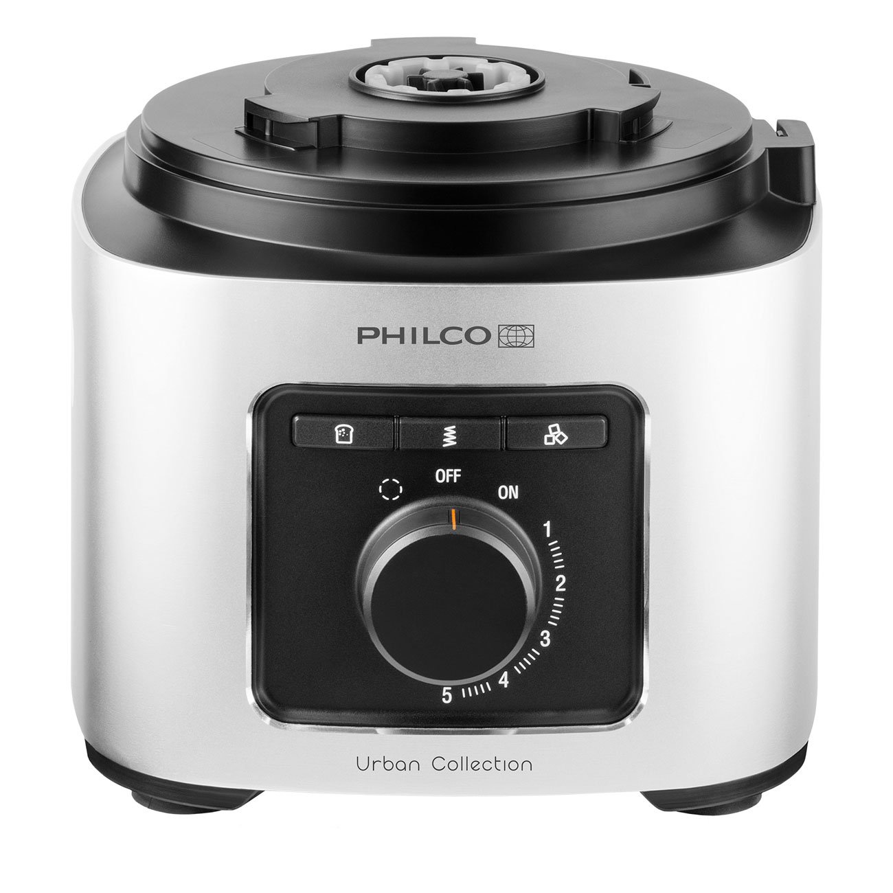 This indispensable kitchen appliance Philco PHFP 7725 is equipped by powerful motor 1000 W and big working container with 2 l capacity. It is handy combination of chopper, slicer, shredder and stand mixer. Fast and easy change of accessories you get slices, French fries, vegetable spirals or just kneading, whisking, beating, chopping or blending. You save a lot of time with our food processor and also you can notice your kitchen craft gets to higher level. Besides the utility you appreciate very unique design and durability of anodized aluminum which was used as main material for this appliance. You will be very pleased by total quality of this product.