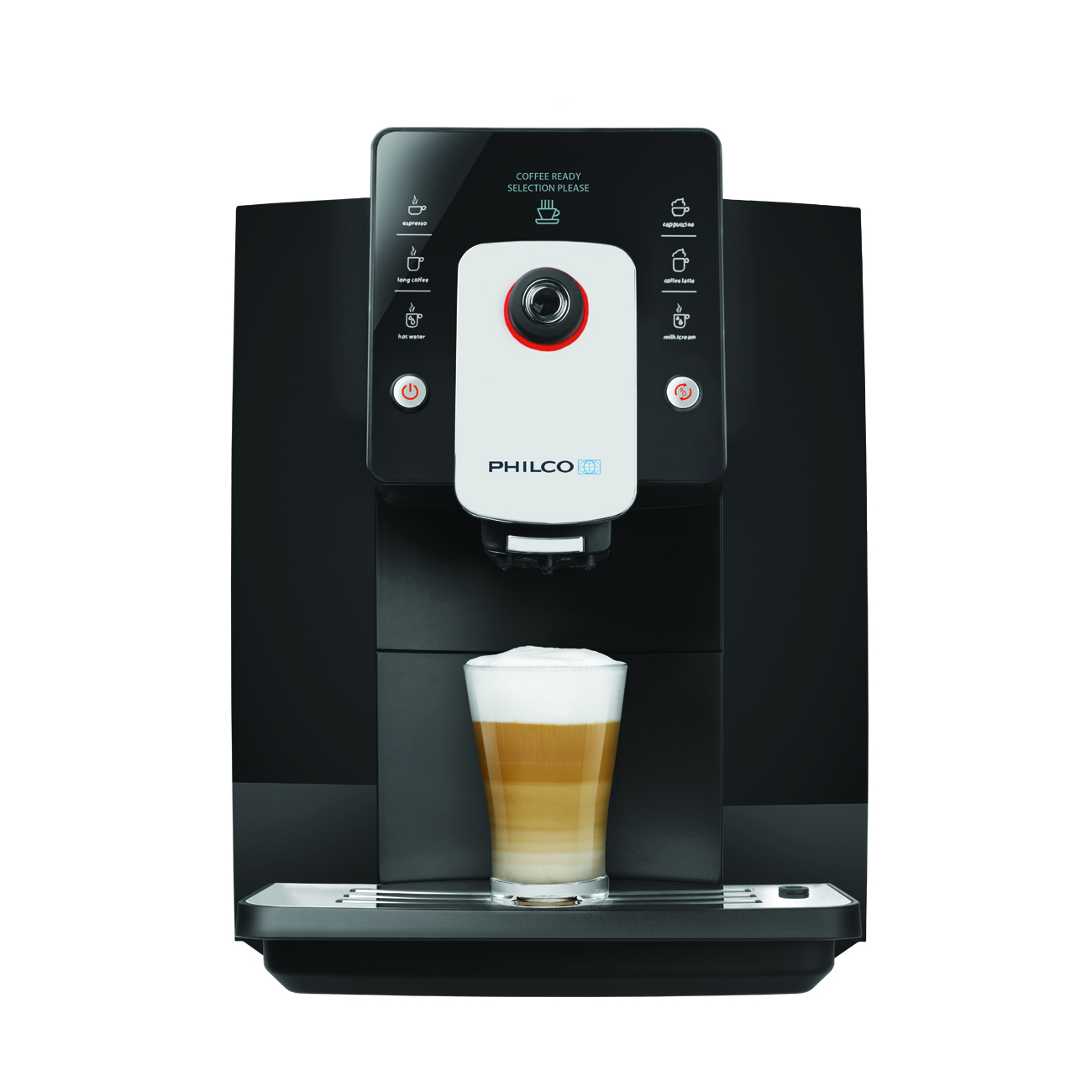 6 types of beverages to choose from (Cappuccino, Espresso, Latté, Long Coffee, milk froth, hot water)