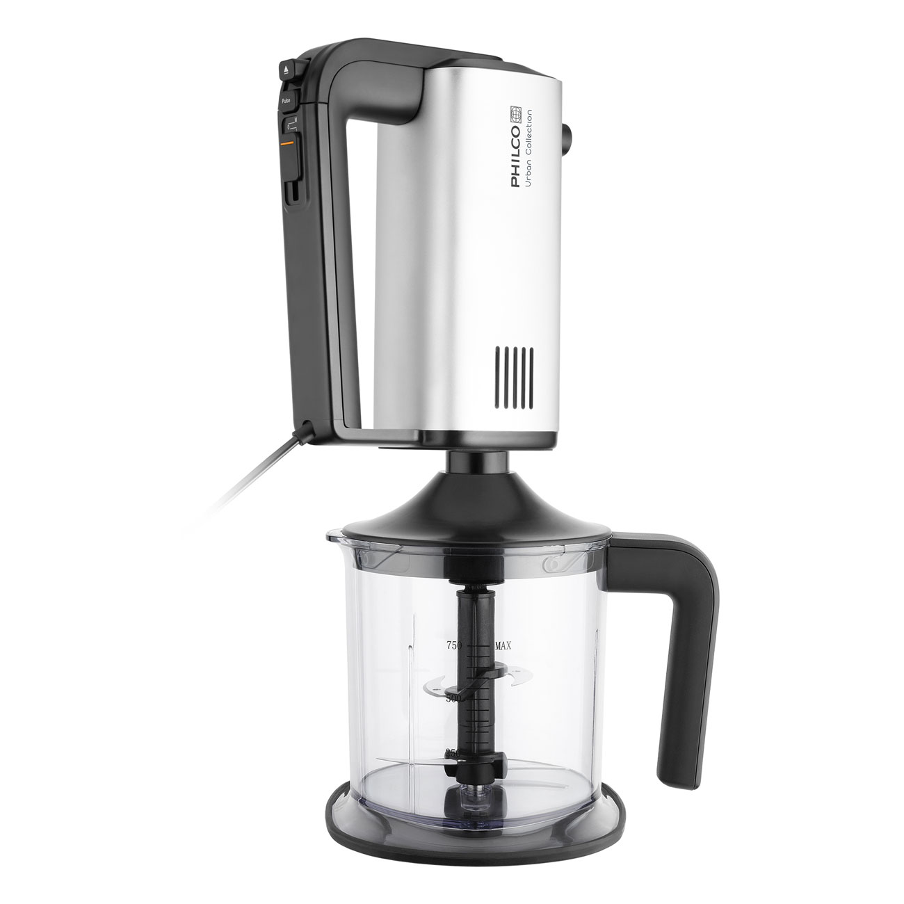 Hand mixer Philco PHHM6325 with lots of accessories from Urban collection extends your kitchen gadgets. It is useful and excellent quality helper for various tasks. Besides whisking cream, stirring liquid dough and kneading you can easily switch this appliance to hand blender or chopper. You can chose one of 5 speeds for different use + pulse function which turns the motor to highest speed for time you press it down. This appliance is really tough, durable and powered by 500 W powerful motor. It will help you with many kitchen quests with incredible result.